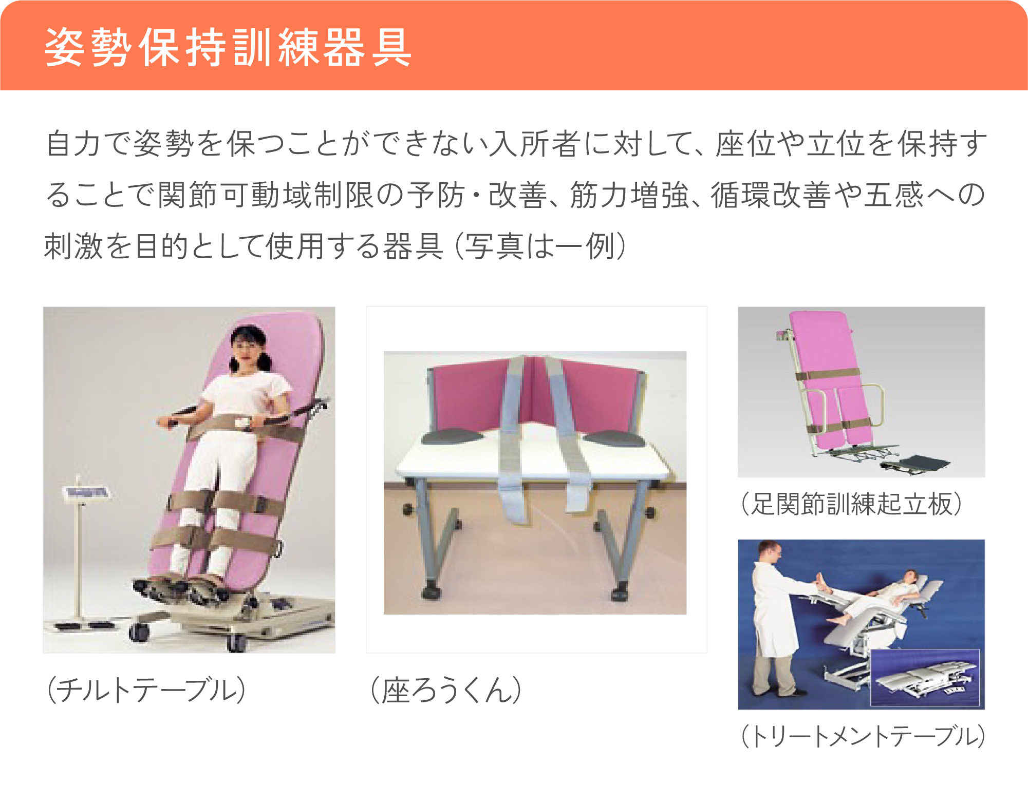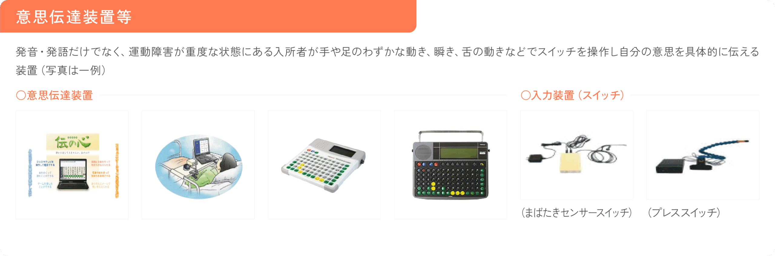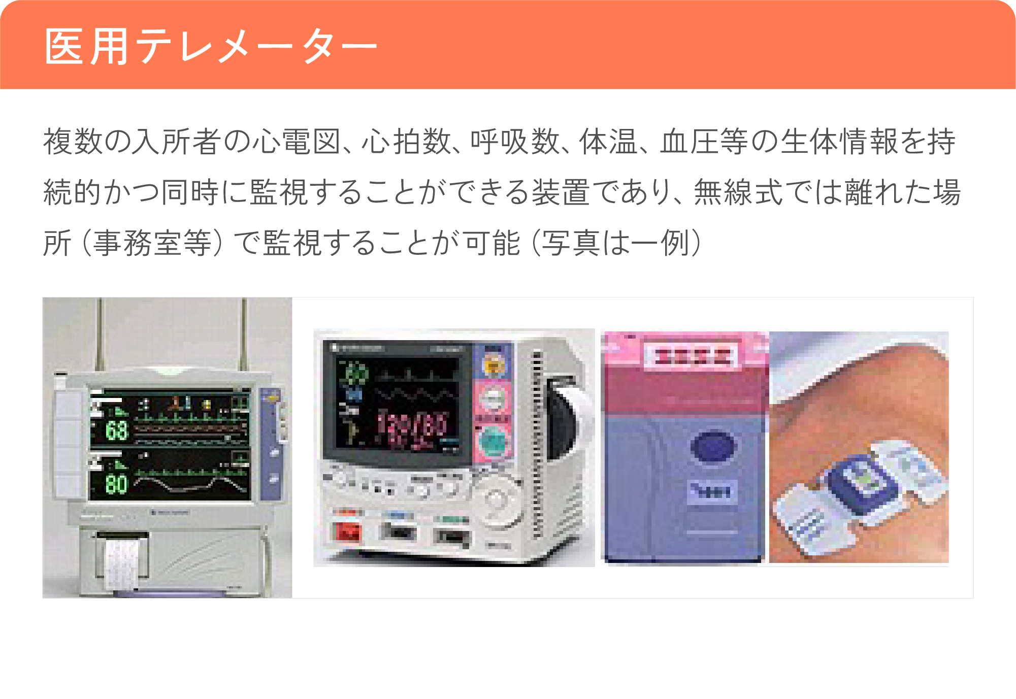 特殊浴槽/車椅子/介護用椅子/介護用ベッド/床ずれ予防対策用具/移乗・体位交換補助用具/移動用リフト/監視カメラ装置/意思伝達装置/痰吸引装置/特殊尿器/医用テレメーター/姿勢保持訓練器具/パルスオキシメーター/各種リハビリ機器